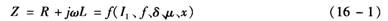 根據(jù)電路理論,結(jié)合上述討論可列出高頻線圈等效阻抗Z的函數(shù)表達(dá)式: