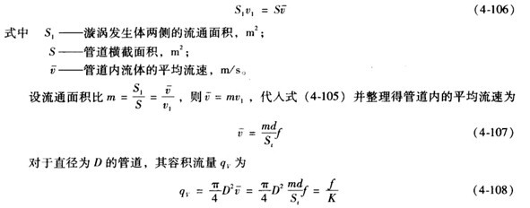 注意:式(4一108)推導(dǎo)的前提是渦街穩(wěn)定,即滿足h/l=0.281,它適合于任何形狀的漩渦發(fā)生體。