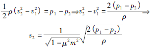 對于不可壓縮流體,ρ1=ρ2=C(常數(shù))。對于可壓縮流體,暫設(shè)ρ為常數(shù),推導(dǎo)出流量方程后,再引入膨脹系數(shù)。因此,由式(1)可得: