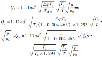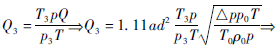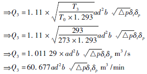 設(shè):p3、Q3、T3為常溫狀態(tài)(一個標(biāo)準(zhǔn)大氣壓,20℃)下的壓力、體積、溫度;則:p3=p0=101325Pa;T3=273+20=293K。