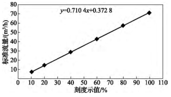 式中:xi為刻度示值,i=1,2,…,6;yi為標(biāo)準(zhǔn)流量;