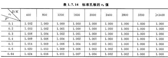 在節(jié)流件上游側(cè)10D的管道內(nèi),當管道內(nèi)壁的相對平均粗糙度Ra/D或K/D小于表1.7.14(孔板)、表1.7.15(噴嘴)所列限值時,則認為該管道是光滑的,稱之為光管,標準提供的流出系數(shù)就是在光管條件下實驗求得的。當管道內(nèi)壁相對平均粗糙度K/D大于上述表列值時,則認為該管道是粗糙的,稱之為糙管。