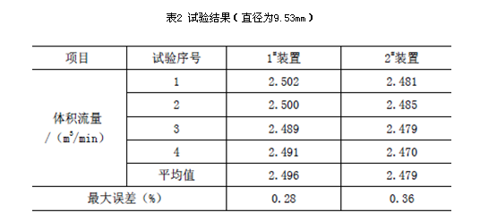 為了驗(yàn)證ISA1932噴嘴測量裝置的重復(fù)性,選取直徑為9.53mm的噴嘴進(jìn)行試驗(yàn)。保證試驗(yàn)工況基本相同的情況下,試驗(yàn)結(jié)果見表2。