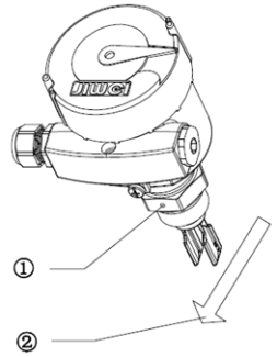 安裝音叉液位開關(guān)時,應(yīng)使叉體面和液體升降或流動保持方向一致,可以避免掛料或由于介質(zhì)對叉體的阻力而產(chǎn)生的測量誤差,如圖1(a)(b)所示。