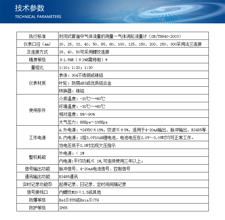 注:用戶在選型時(shí),應(yīng)根據(jù)管道公稱壓力、介質(zhì)最高壓力、介質(zhì)溫度、介質(zhì)組分情況、流量范圍及信號(hào)輸出要求合理選擇流量計(jì)的型號(hào)規(guī)格。為使流量計(jì)的使用性能,流量計(jì)的使用流量范圍應(yīng)在(20%~80%)Qmax范圍內(nèi)比較合適。