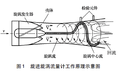 當(dāng)流體通過螺旋形的旋渦發(fā)生體后,流體被迫繞旋渦發(fā)生體中心劇烈地旋轉(zhuǎn),形成旋渦流。旋渦流加速,沿流動方向經(jīng)縮段、流動強度增強。當(dāng)旋渦流進入擴散段后,在導(dǎo)流體回流的作用下,該旋渦產(chǎn)生二次旋轉(zhuǎn),二次旋渦的頻率與流量與正比。當(dāng)流量計設(shè)計得當(dāng)時,在很寬的流量范圍內(nèi),旋渦頻率與流量成線性關(guān)系。該頻率由壓電傳感器檢測,通過流量積算儀進行運算和處理。顯示流量的瞬間流量和累積總量,并變送輸出對應(yīng)的4-20mA電流信號。